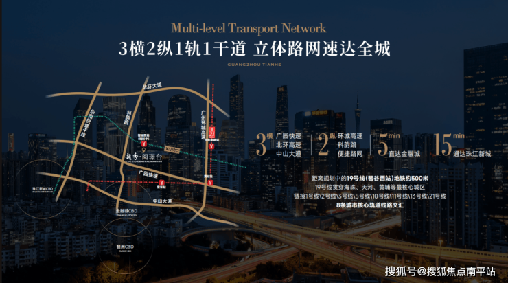•3横2纵主干道, 速通珠金琶 ,北环高速+广园快速+中山大道/环城高速+科韵路