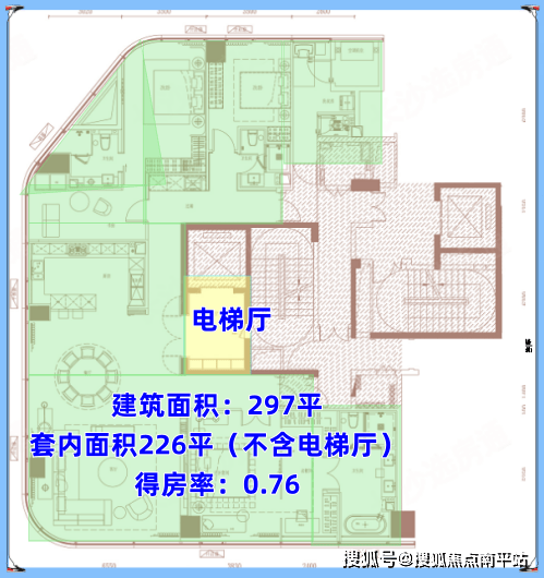 润和滨江湾什么都好,唯一的槽点就是得房率,一直被拿来说事,因为是商业性质赠送少。一期297户型博主实测了一下,得房率才76%,当然也有人说,豪宅不在乎得房率,在乎情绪价值。