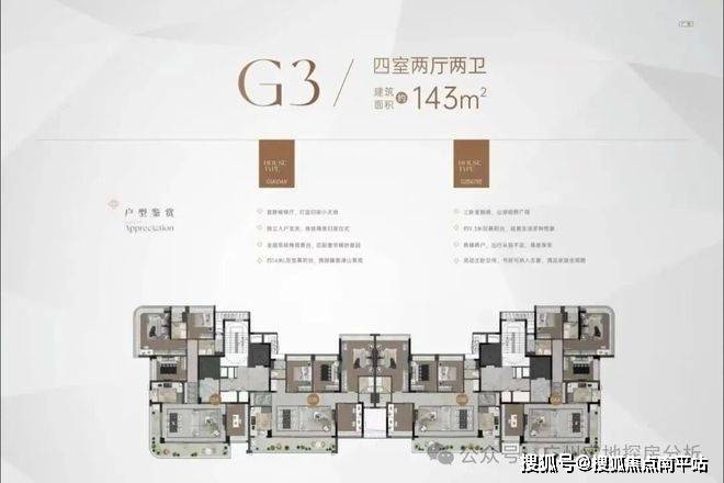 3、产品品质高端:定位为高端改善型住宅,户型设计为143㎡的大平层和叠墅,板楼设计、两梯两户或一梯一户,专梯专户,私密性强,得房率高,居住舒适度高。