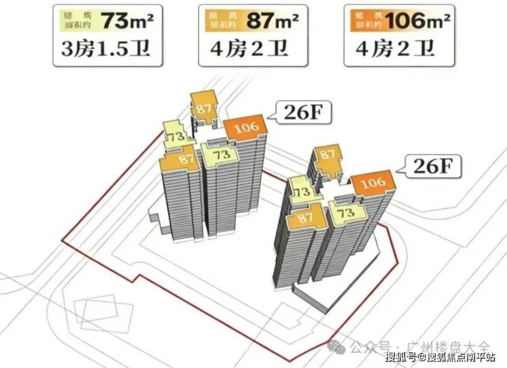 产品:项目主打建面约73-106㎡的三至四房户型,全部为南向设计,其中73㎡三房户型是目前白鹅潭板块罕见的小户型产品,有效降低了置业门槛,使用率预计可达110%-120%,比市场同面积产品空间利用率更高。
