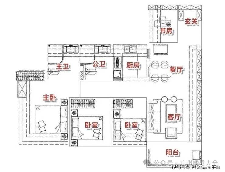 84㎡做四房两卫,设计很牛,基本是73㎡plus版,不同之处在于,玄关处做了书房。