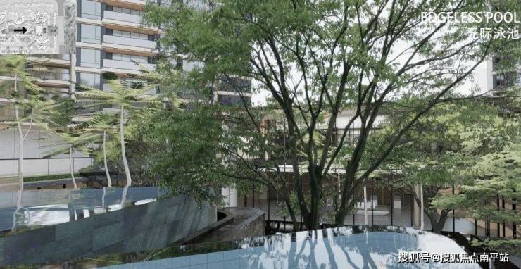 ▲落客区效果图“引水带绿”是园林营造的故事主线,从园区入口,一路连缀着主入口水景、迎宾景院、游廊环绕的下沉庭院。入园后还有户外溪流花园、度假感无边际漂浮泳池、半岛池畔、漂浮卡座等园区配套,满足全家人的社区配套需求。