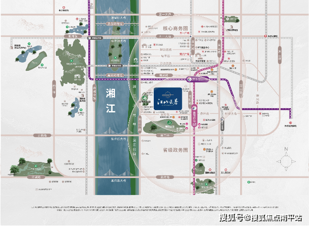 景观资源:项目东临湘江,部分楼栋可直面江景,西侧规划约1.2万㎡中央园林,以“山水画卷”为灵感,打造金属景框屏风、水滴状碧石水景、层叠绿植等景观节点,实现“推窗见江、下楼入园”的沉浸式体验。