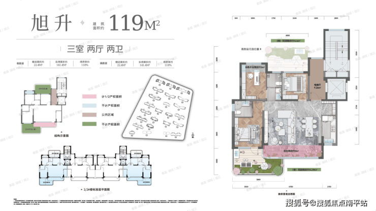 臻享:7-10层奢品洋房 建筑面积约119-180㎡ 绿地率超35.5%