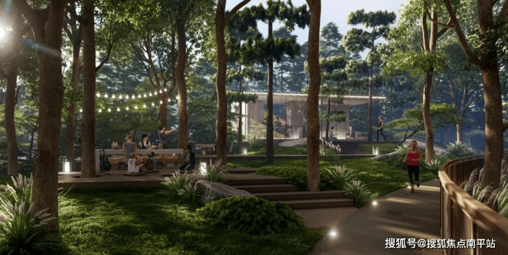 相连约1.5万方山体私享公园,勾勒林下交谈、聚会、休闲、艺术的生活意境。