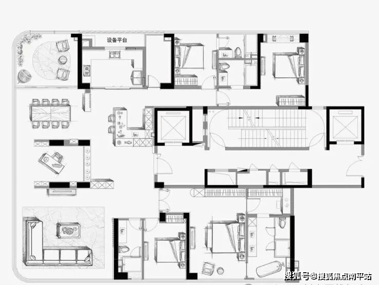 极致洄游公区,营造“家庭平权化”客厅“内容化"社交“共鸣化”居者在举手投足间随时与自然交心。