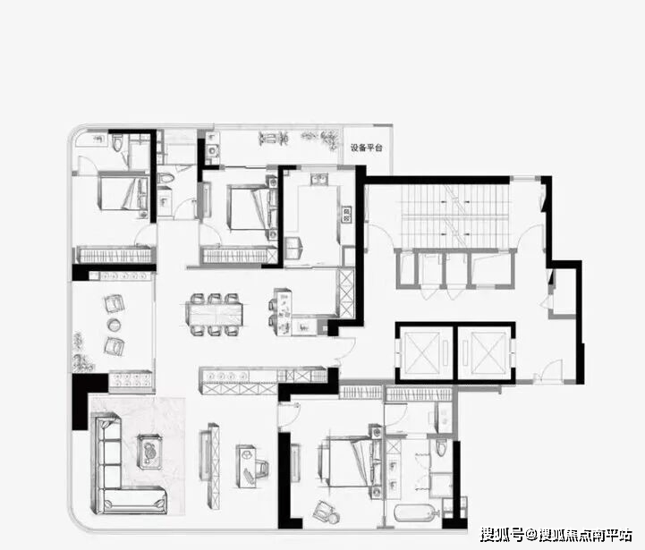 创新使用悬挑结构,承重结构集中在楼栋中部,是使户型更为灵动,镶嵌落地玻璃,让整个建筑更通透,成为天空与霞光完美的镜子。