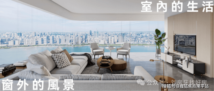 外墙无柱设计,打破空间的边界,实现270°无边框一线江景,LDKSB纵贯一体化动线设计,最大程度地加强了生活与江的互动,让江景真正成为生活的一部分。