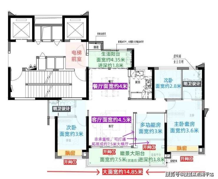 ·四面宽朝南,约9米超长景观阳台,尽情舒展景观视野