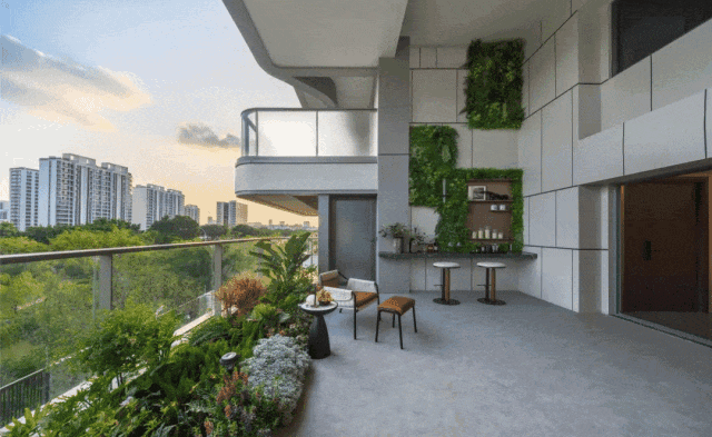 创新奇偶错层阳台设计,独立采光设计,超大面积的双空中庭院。每户都能拥有⼀个约几十㎡的天空私人花园兼⼀个约6米高的超级挑高露台。