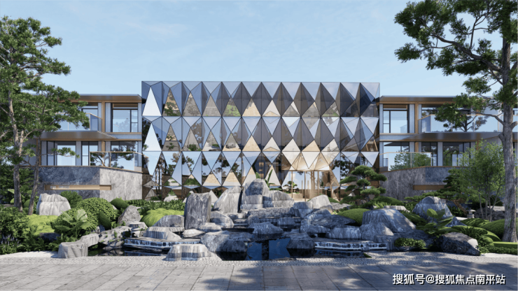 它将Chanel菱格纹的精致、PRADA几何线条的利落与中国折纸艺术的灵动相融,不仅让建筑成为视觉焦点,更在踏入的瞬间,为业主铺就一条从喧嚣到静谧的过渡带。