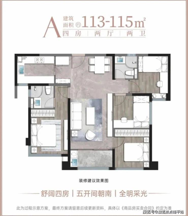 【户型面积】项目规划7栋高层,层高18-33层,总户数598户,共有5种户型,115平4房2卫、132-135平4房2卫、192平4房3卫、194平4房3卫、268平5房4卫。115平共208套,135平共208套,192平50套,194平88套,268平44套。