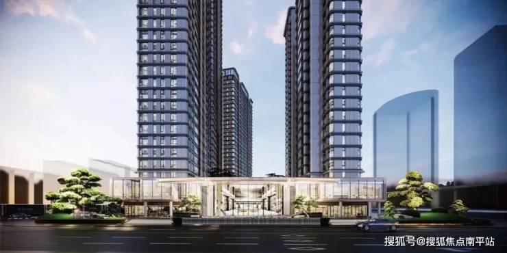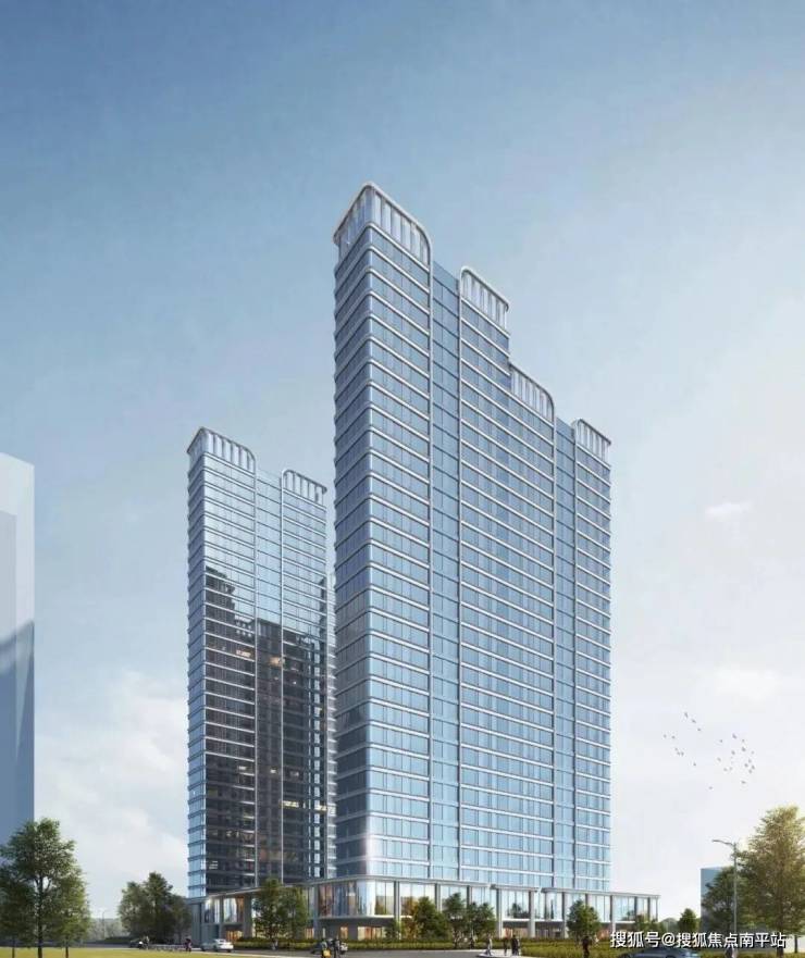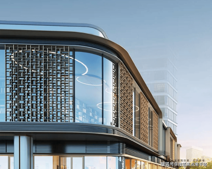 项目外立面采用大面积中空LOW-E玻璃幕墙,辅以金属铝板勾勒,环幕弧面公建化立面,打造屹立中心的封面。