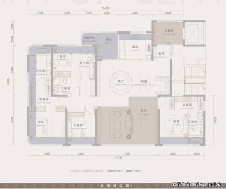 约9㎡专属前厅,4+1三套房创新设计,约3.3米层高,约95㎡恢弘尺度,约7米大横厅,约39㎡套房奢配步进式衣帽间、独立卫浴,约113%使用率。