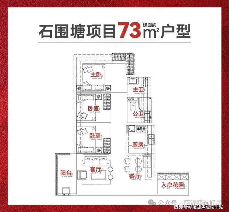 约73㎡3房1.5卫,4条梯腿,100套;