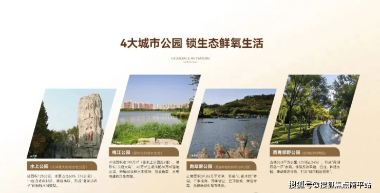 1️⃣四大公园 鲜氧生态:水上公园、梅江公园、南翠屏公园、西青郊野公园,解锁生态鲜氧生活。
