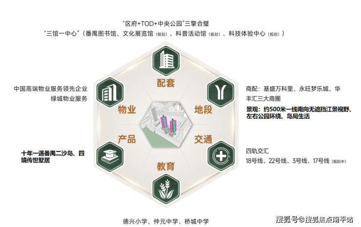 ◎ 尊踞区府正脉,直线距离番禺区政府约200米,坐享广州中轴上仅有的“区府+TOD+中央公园”三引擎合璧的超级中芯。税务局、检察院、财政局、教育局等行政机构环立,凝聚一城高端圈层