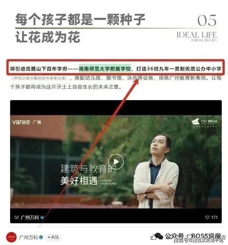 6月16日广州万科官方公众号文章中就明确提到了引入湖南师范大学附属学校