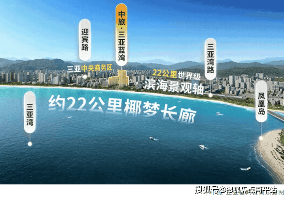 中旅·三亚蓝湾,总占地面积约52亩,总建筑面积约19万平方米,业态涵盖了高端住宅、地标商务和热带商业街区。