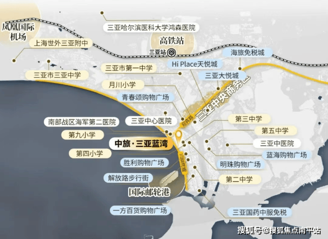 从图上也不难看出,上海世外三亚附中、第九小学等优质教育资源高度集中,医疗配套更是不在话下。