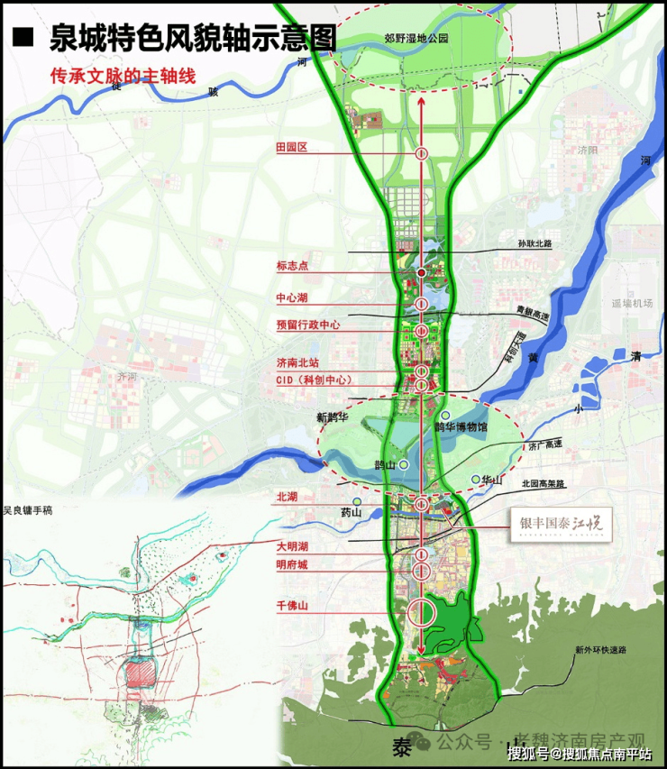 3、公园绿地:于二环东路与小清河北路交汇处,背靠华山黄台山,南观小清河,背山面水,山主人丁水主财