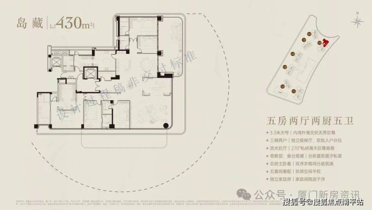 超90米、福建最长海阙之门,琉璃微光,辉映奢雅,厦门首创屋顶内外双无边际泳池,厦门首创三会所顶序豪宅(下沉式会所+架空层泛会所+大门屋顶会所),于厦门首发七衡系统科技配置(衡温、衡湿、衡氧、衡净、衡洁、衡静、衡光)实现低碳环保的居住品质。