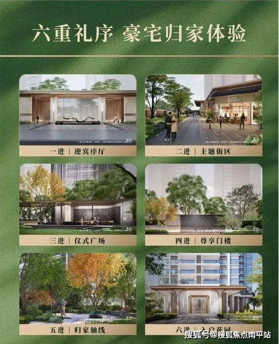 迎宾序厅—主题街区—仪式广场—尊享门楼—主题归家轴线—入户花园,归家之路步步尊贵。