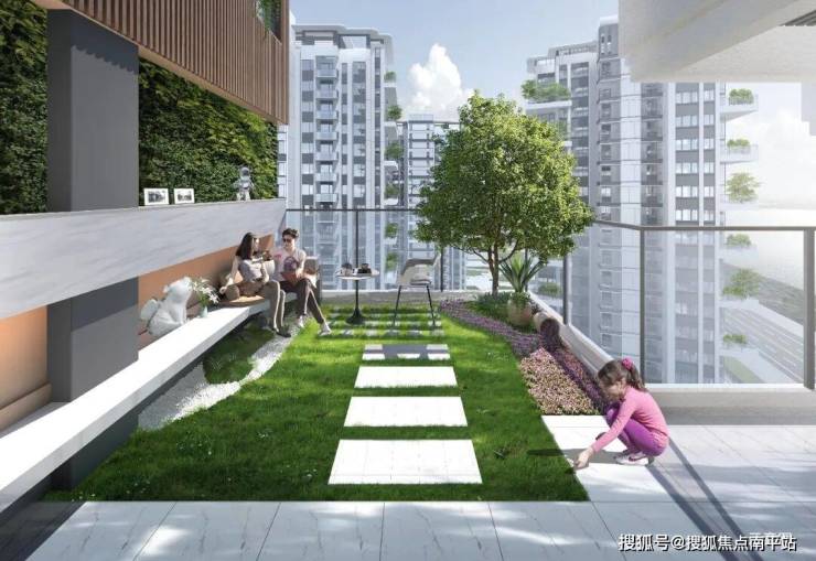 超大面积的空中庭院,是室内居住空间对室外空间的延伸,作为“第三客厅”,不仅为住户提供一个亲近自然的室外空间,还是一个休闲娱乐、社交、运动的场所,满足每个家庭的需求。