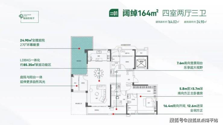 户户空中庭院100%不计面积,阳台50%不计面积,超高得房率,高空间使用率。同样面积,享有更大空间,既有高层的开阔空间及视野,又能享受别墅才有的庭院空间。