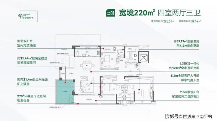 实现270°最大的观景面,最大程度拥抱公园风光,您的视野有多宽,院外的公园景观面就有多大。