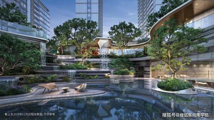 1、奢配浮岛森林:浮岛森林下沉庭院,灵感来自于长沙岳麓之秋,归家水景复刻岳麓之秋的起伏节奏,演绎万山红遍,同时具备多元社交功能——待客会友、休息会客及立体看台空间。
