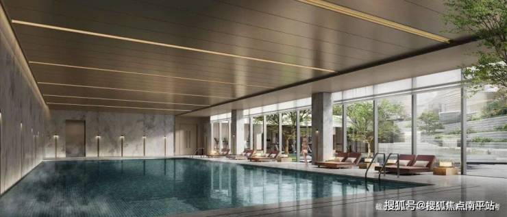 2、奢配奢华酒店式全景观瀑会所: 采用雅致的色彩及考究的材质,打造奢华酒店式会所空间。私享健身空间、四季恒温泳池、水上SPA…每个空间都是极致高配。