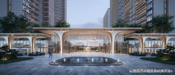 1、极质豪门气场:鑫远·紫樾府的“府邸豪门”,用挑檐9米的门头及酒店式环岛落客区、迎宾曲面水景叠瀑等,构建起归家的豪门仪式感。