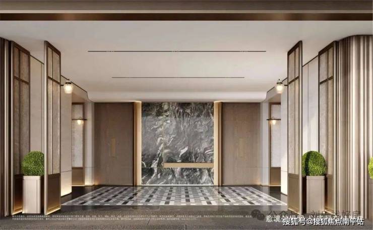 ◆ 奢境 / 筑奢质公区 以星光礼遇>“奢金”双入户大堂:定制岩板背景搭配艺术拼花地面,以雅奢美学对话圈层身份。