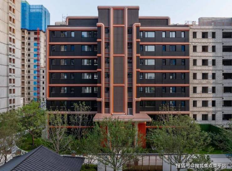 园区内,洋房楼座的部分外檐已展示,以蒙德里安格子画和劳斯莱斯金腰线为灵感,做出了高辨识度。