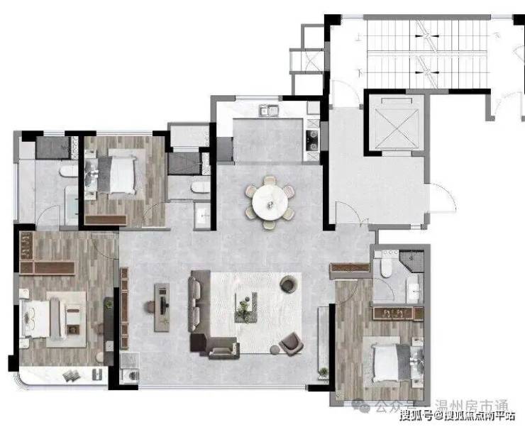 整体几乎零浪费,实现面积充足的3+1房