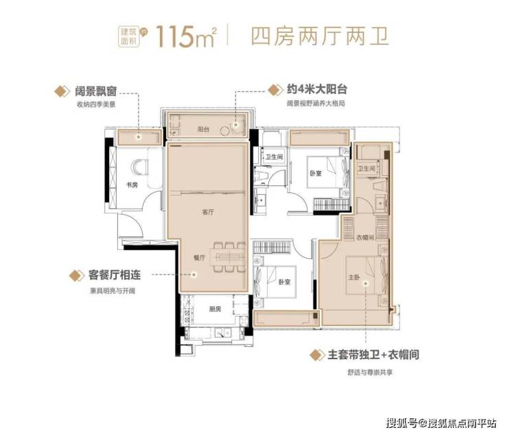 建面约115㎡四房,更是将舒适度提升一个高度。