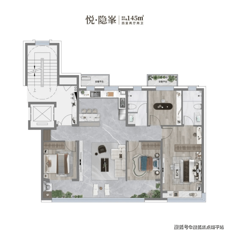 全系户型:10层125-175㎡宽境洋房、17-18层115-145㎡舒居小高层