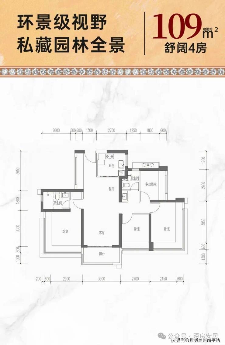 109㎡的4房2厅2卫,折后总价556-575万/套,单价5.09-5.27万/㎡。