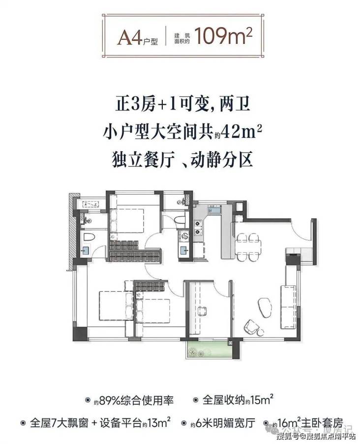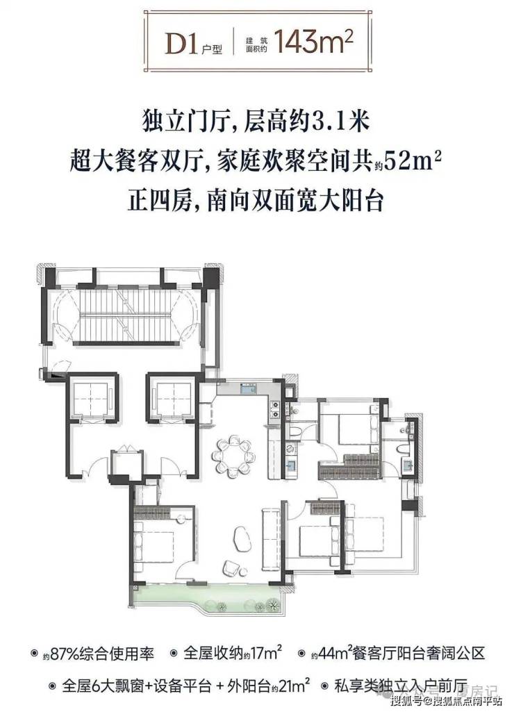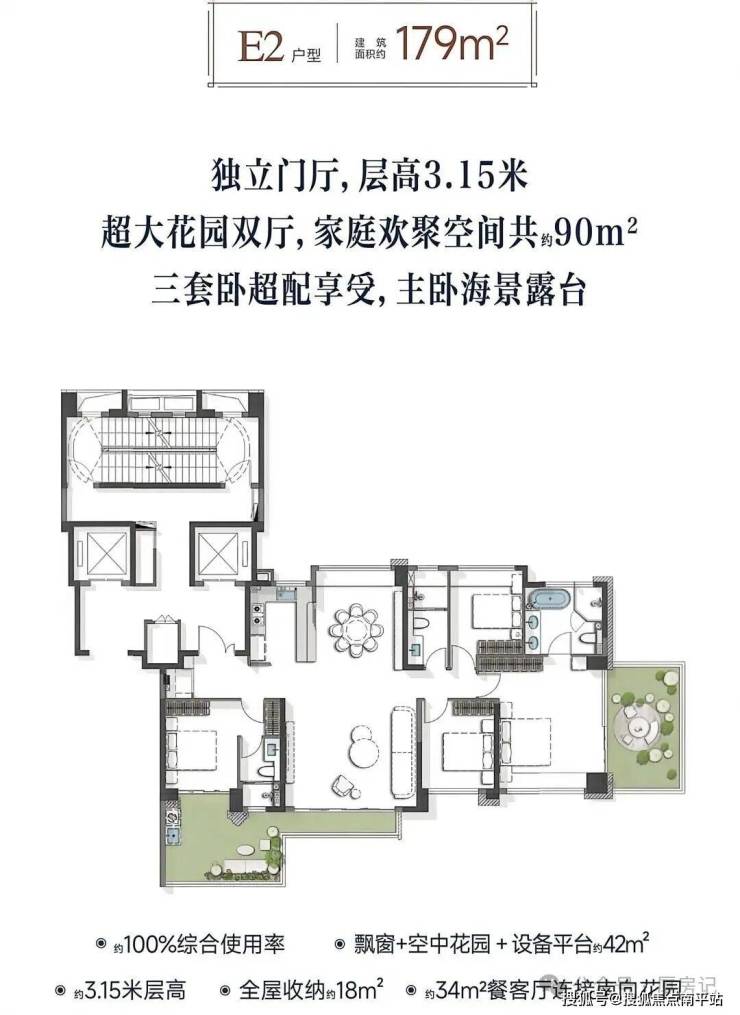 •为“高层+四代宅”组合,全系是100㎡以上纯改善型住宅,户型涵盖建面约104 - 179㎡的四房;