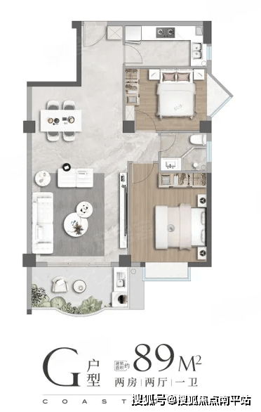 主力小户型囊括82㎡、84㎡、89㎡三种面积段,却清一色设计为两房一卫。这与岛内80㎡+面积段主流三房两卫配置严重脱节。
