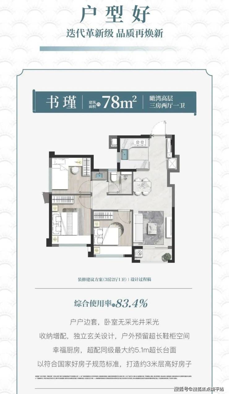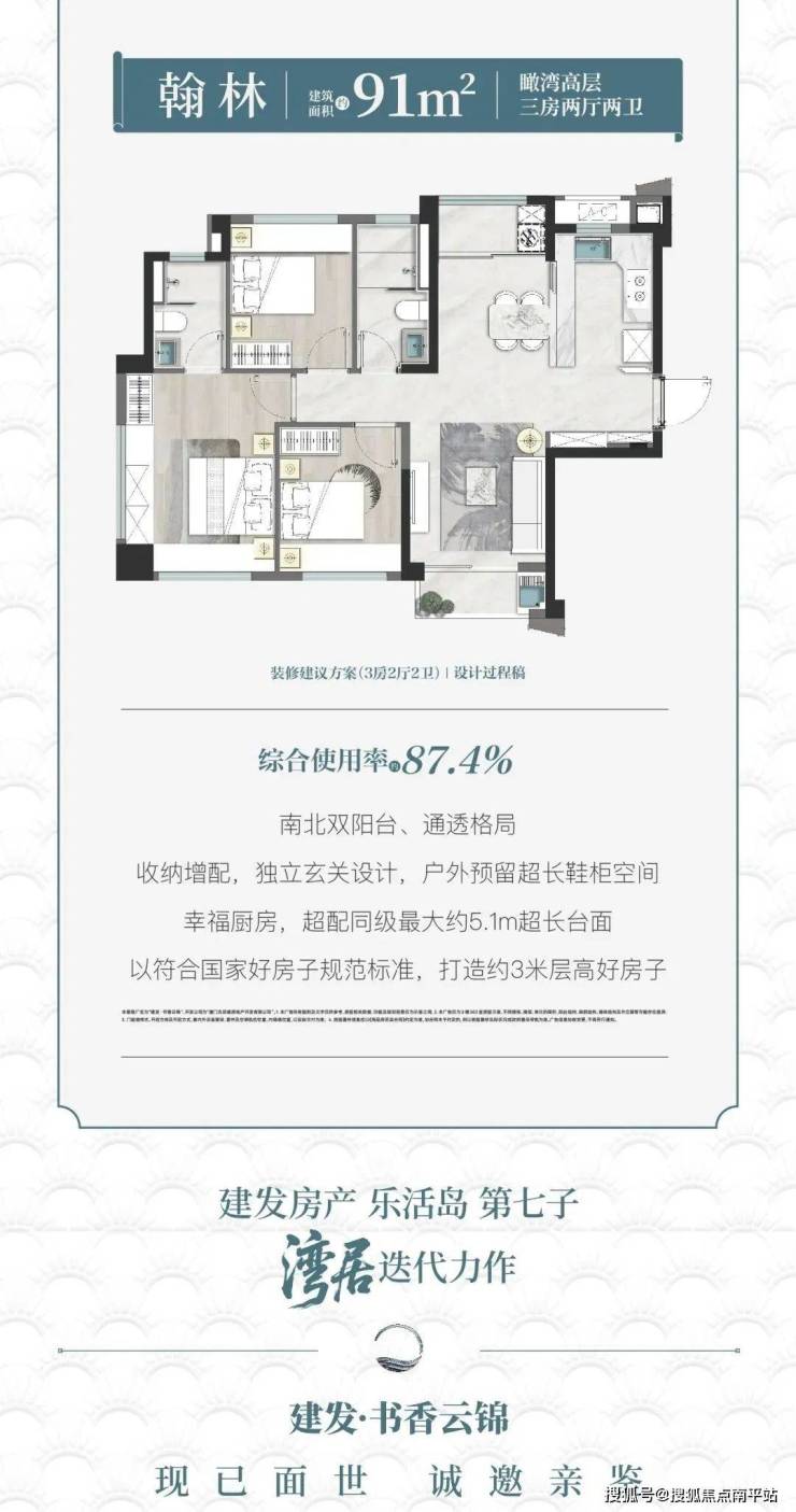 规划2 栋高层 8栋洋房,(听说价格很惊喜)书香云锦此次推出的两张王牌户型—约79㎡和91㎡揽湾高层 其中91平为边套,南北通透,还带双阳台,最新户型图已出。(11楼以上可看湾景。)洋房面积段还没出来。