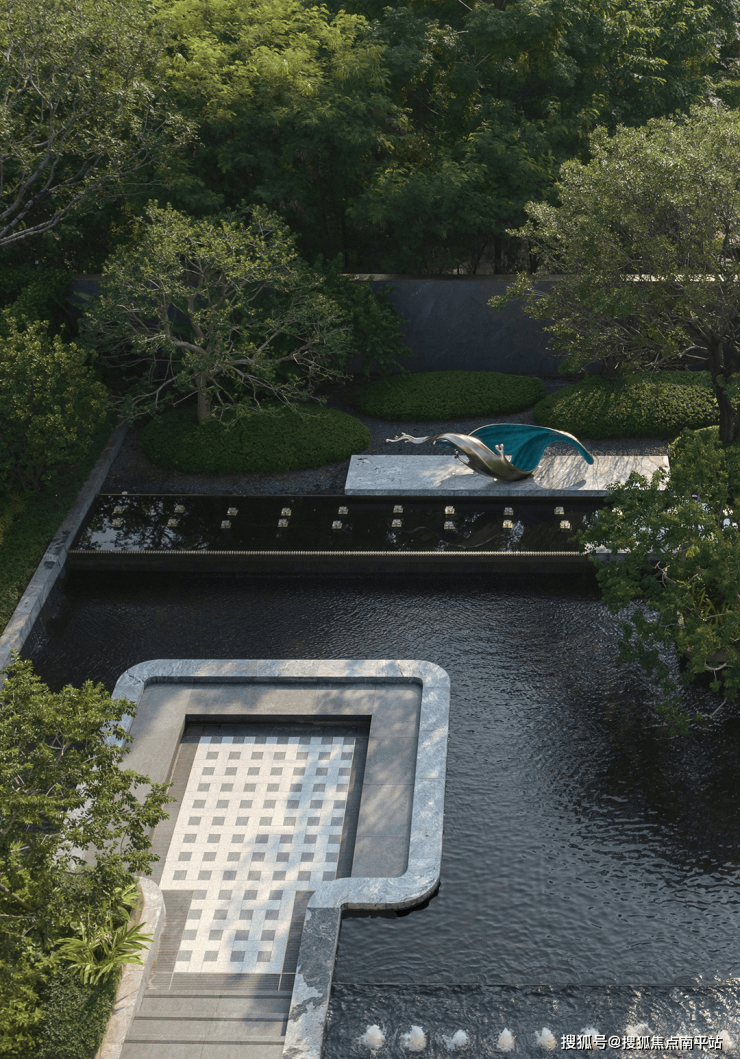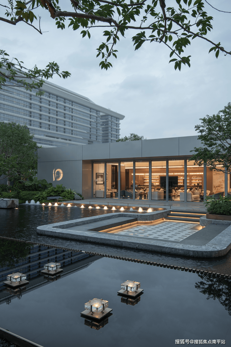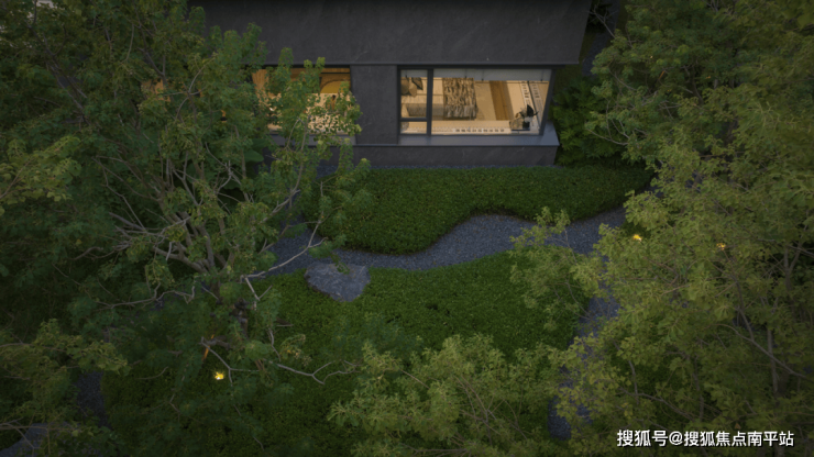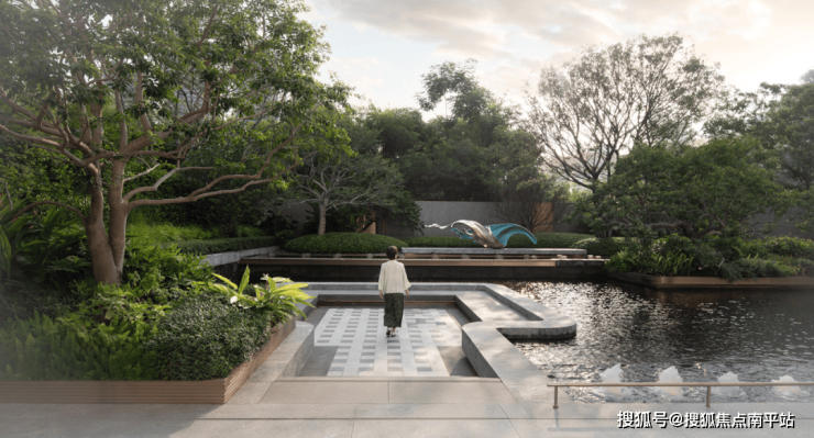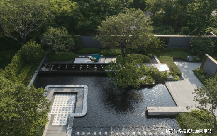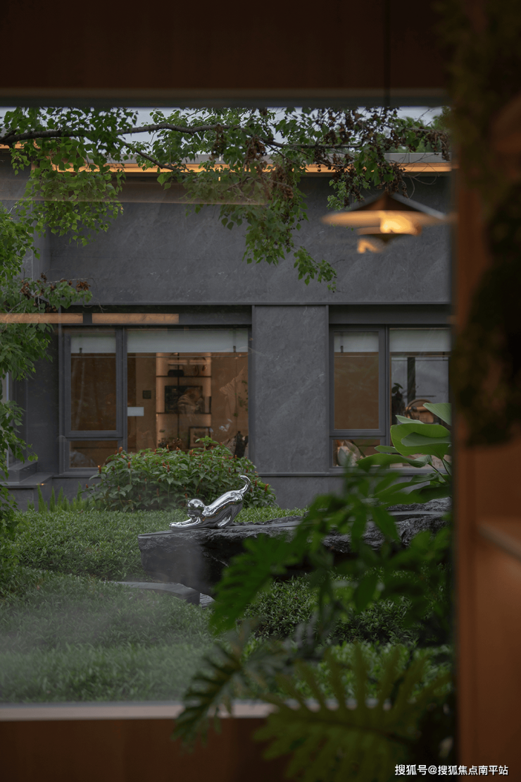 围合交融的空间里,漏景、水声、光影与植物气息交织,理性秩序中藏着感性流动。临水而居、择水而憩,以与自然共生之心,绘就山水相融的宁静画卷。