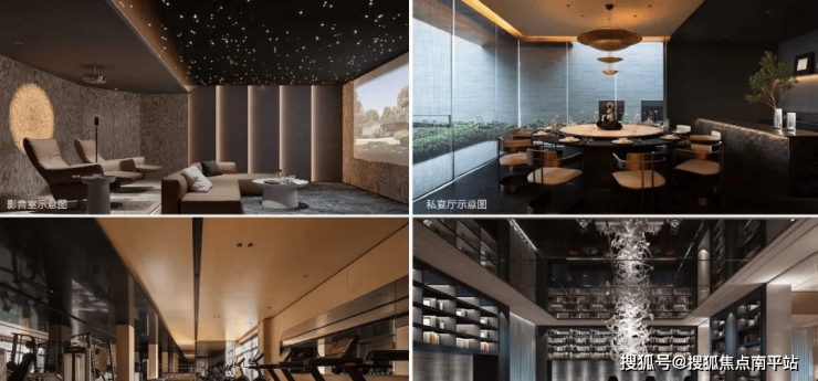 该项目也打造下沉式会所,包含私宴厅、影音室、艺术书吧、健身房等空间。整体面南向立面窗墙比70%,交付时阳台统一封窗户,保障整体立面的统一性。