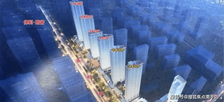 保利琅誉即保利城四期一共6栋房子分为AB两个区—-B区北片项目,共四栋住宅楼,其中1#38F,2#32F,3#25F,4#31F,2、3、4#都有架空层。保利琅誉一共360户,车位配比1:1.09。A区南片有2栋 住宅和商业5#32F和6#32F