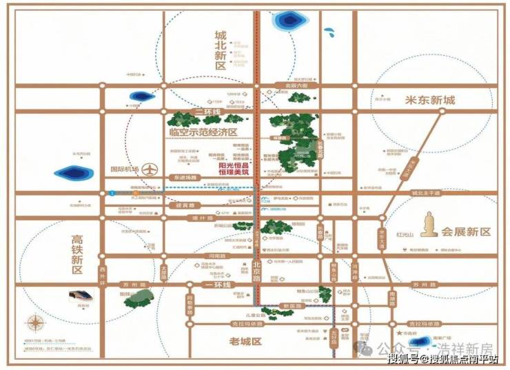 恒璟美筑紧邻50米宽市政绿化长廊,东侧有3800亩种苗场绿化苗圃,堪称城市天然氧吧;北二环两侧也覆盖千余米绿化长廊,项目周边的生态绿化面积远超红光山和大小绿谷。