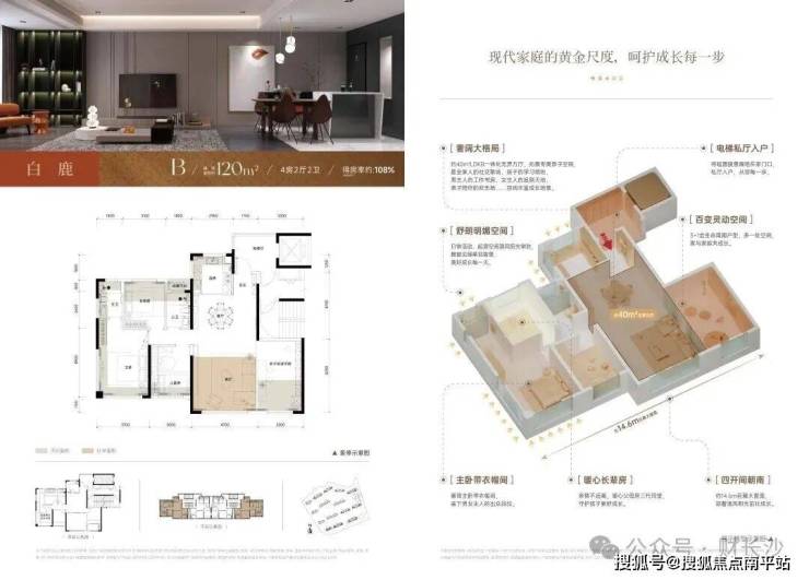 白鹿:120㎡四房两厅两卫全能配置,从容应对四口之家或三代同堂的居住需求;