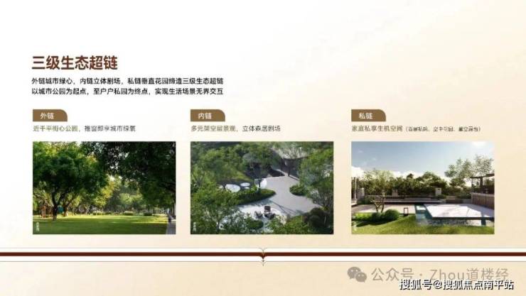 外链城市绿心,内链立体剧场,私链垂直花园,构建多层次、立体化的生态系统住区。