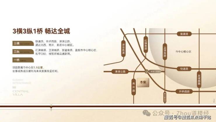 三纵:红旗南路、卫津南路、友谊南路,直抵和平等市中心,接驳环城高速路网