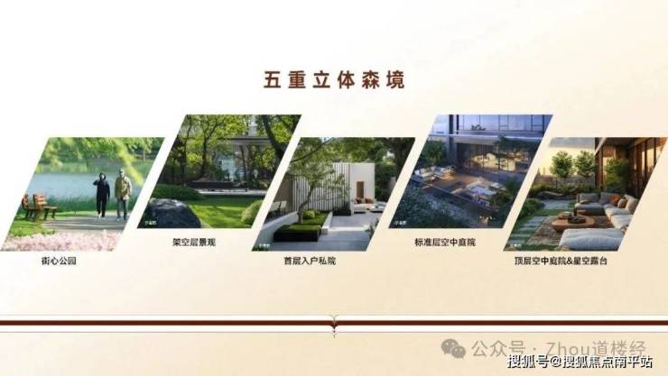 城市公园、架空绿岛、首层私院、空中花园、星空露台,五重绿意交织,构筑全天候自然森居。